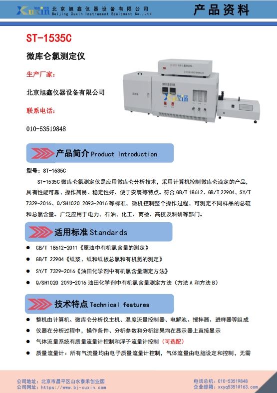 旭鑫仪器油田化学剂有机氯检测仪ST-1535C